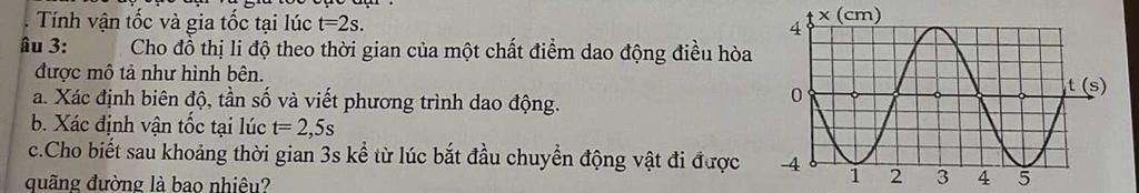 b. `v = x' = -2pisin(0,5pit + pi/2) = = -2pisin(0,5pi.2,5 + pi/2) = 4,44 (cm//s)`