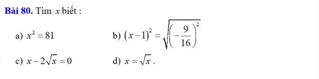 `b)``(x-1)^2=sqrt{(-9/16)^2}`