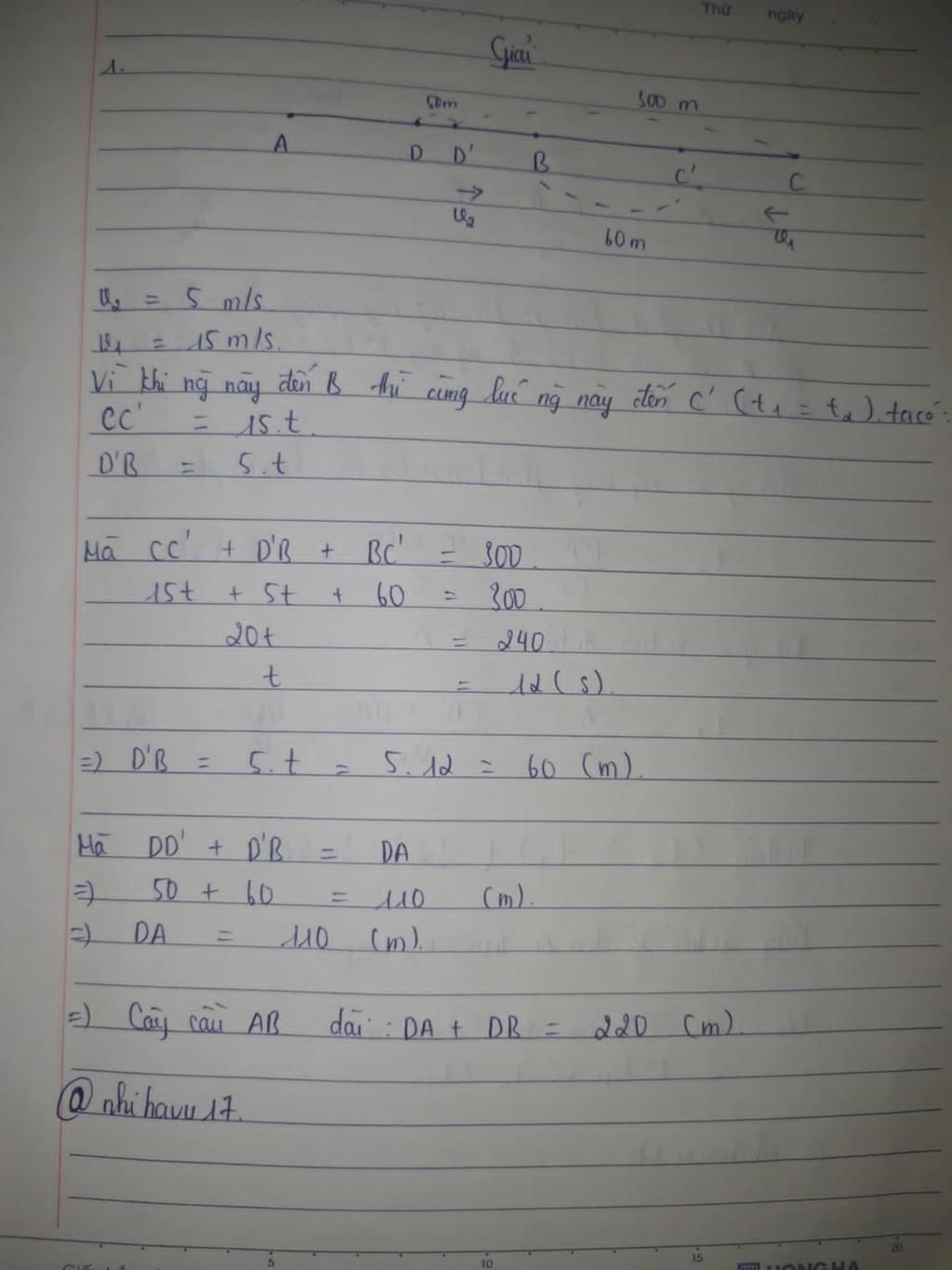 1. Tìm chiều dài cây cầu.