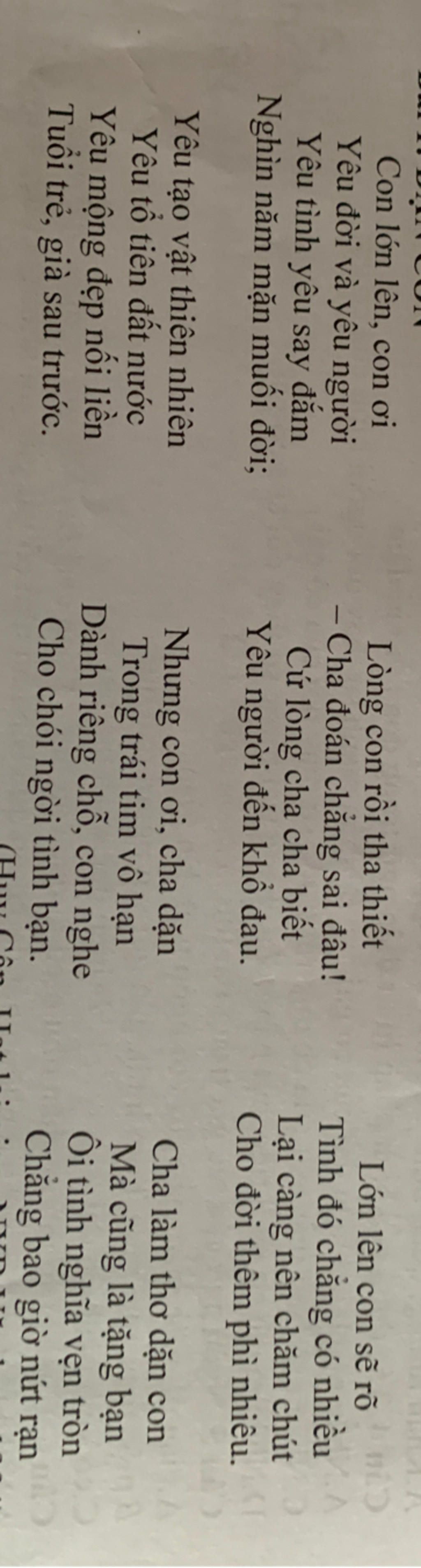 Viết đoạn văn khoảng 10-12 câu trình bày cảm nhận của em về bài thơ Dặn con cùa Huy Cận. Trong đó có sử dụng 1 phép thế