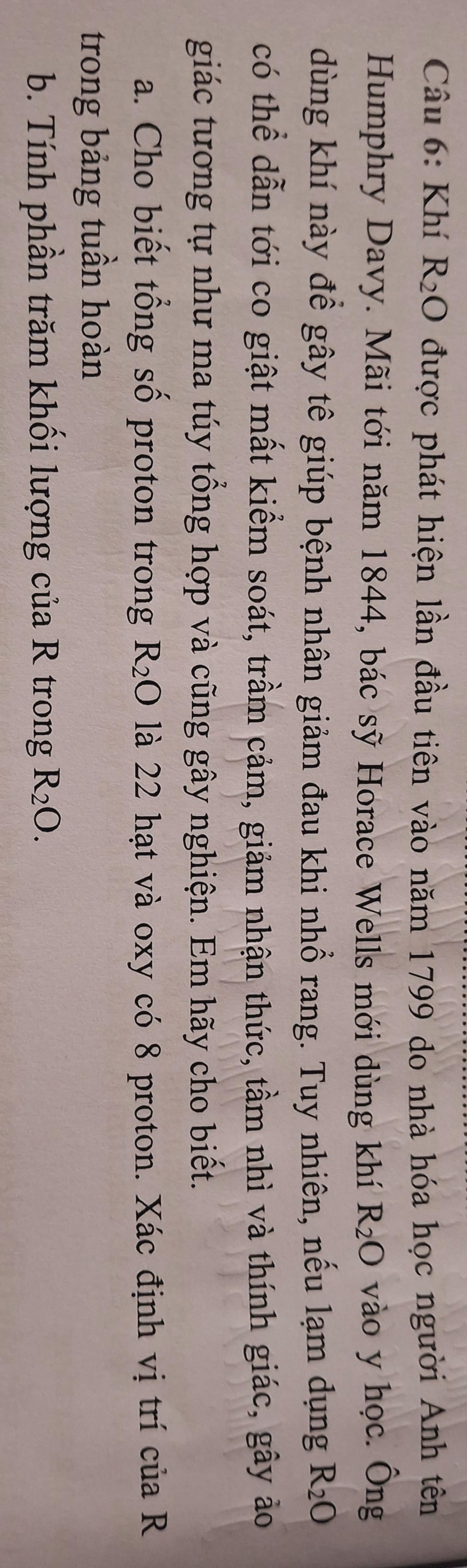 => Vị trí của R trong bảng tuần hoàn là ô thứ 7, chu kì 2, nhóm VA => R là Nitrogen