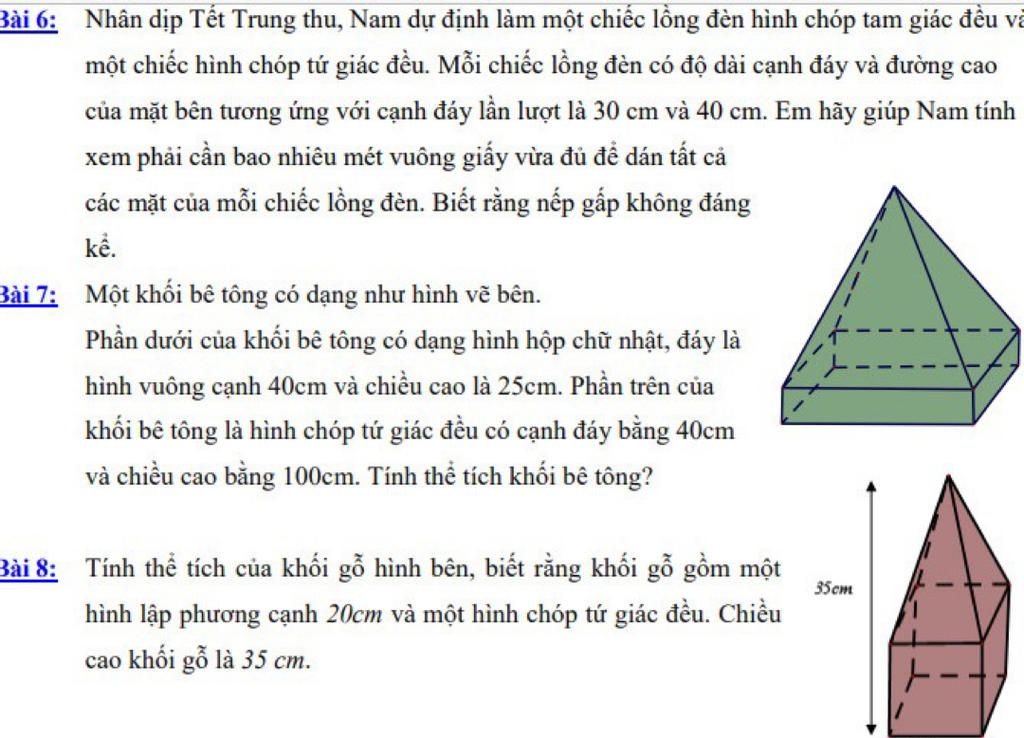 Bài 6: Nhân dịp Tết Trung thu, Nam dự định làm một chiếc lồng đèn hình chóp tam giác đều v