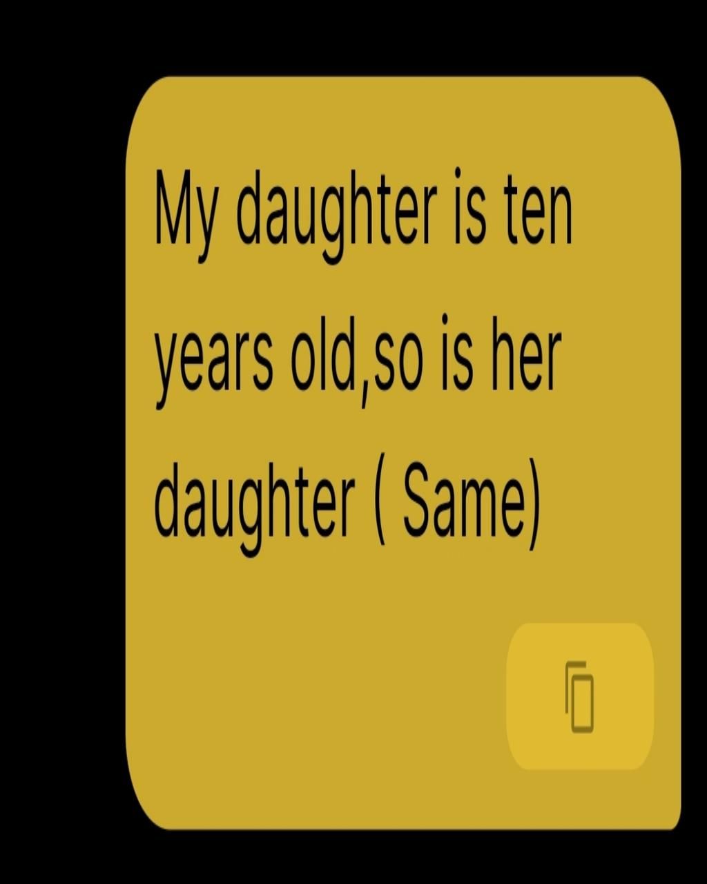 `bb{Question:}` My daughter is ten years old, so is her friend (Same)