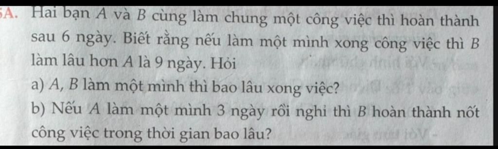 5A. Hai bạn A và B cùng làm chung một công việc thì hoàn thành