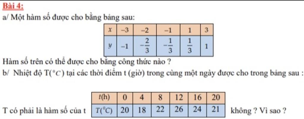 b.Nhiệt độ T là hàm số của thời điểm t vì mỗi giá trị của t chỉ xác định đúng $1$ giá trị của T.