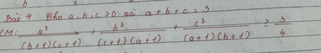 $\to \dfrac{a^3}{(b+1)(c+1)}+\dfrac{b+1}8+\dfrac{c+1}8\ge \dfrac34a$