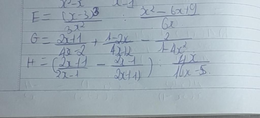 `E=((x-3)^3)/(3x^2):(x^2-6x+9)/(6x)(x ` $\ne$ `3;x ` $\ne$ `0) `