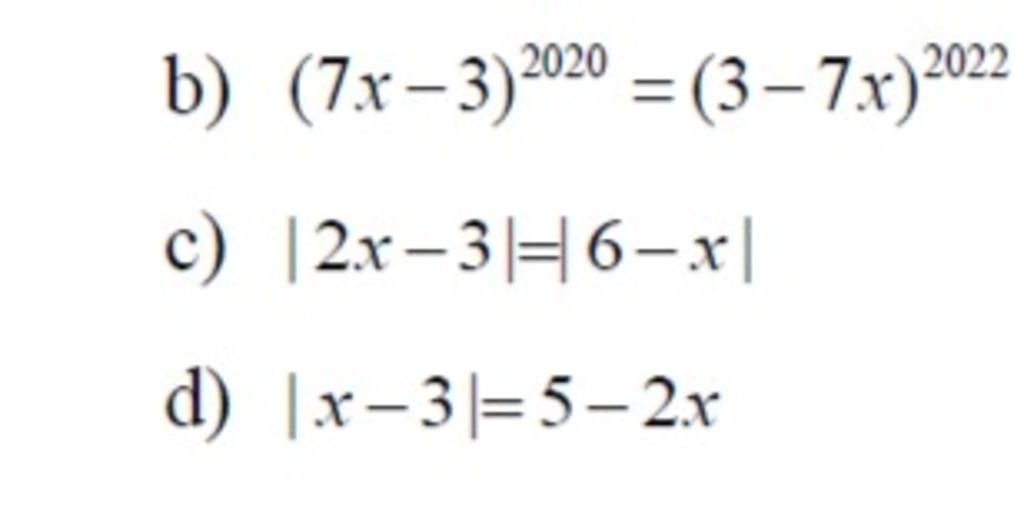 b) $(7x - 3)^{2020} = (3 - 7x)^{2022}$