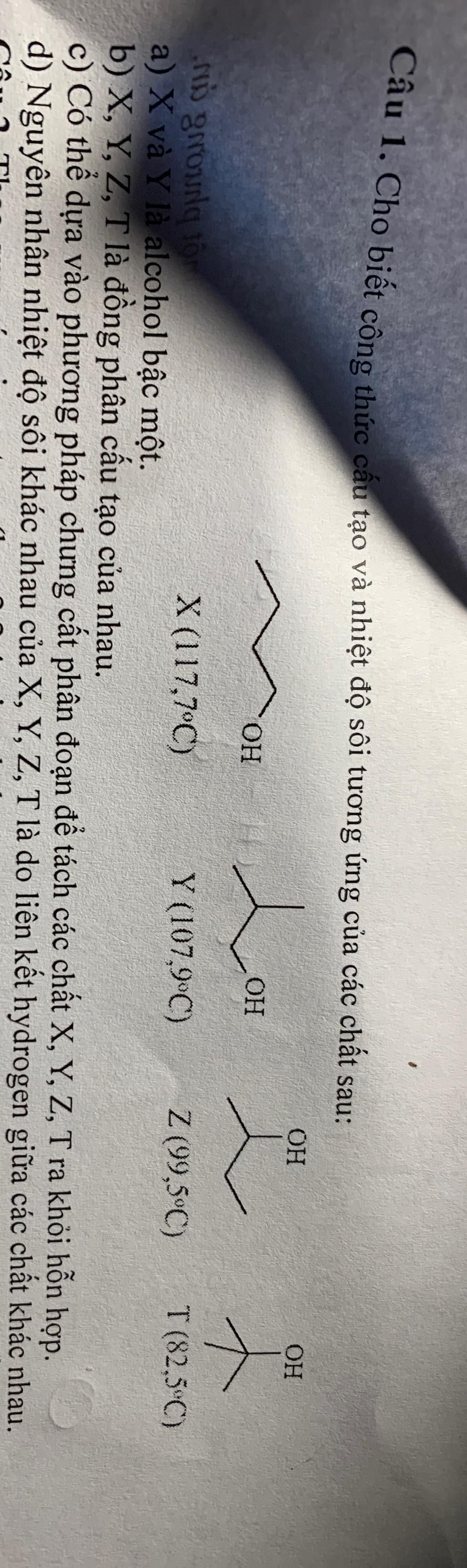 Câu 1. Cho biết công thức cấu tạo và nhiệt độ sôi tương ứng của các chất