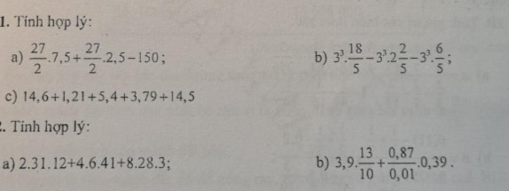 `b)3^3 . 18/5 - 3^3 . 2 2/5 - 3^3 . 6/5`