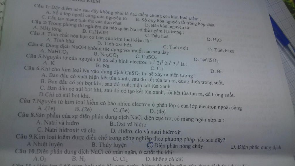 6,B, Ban đầu có sủi bọt khí, sau đó xuất hiện kết tủa xanh