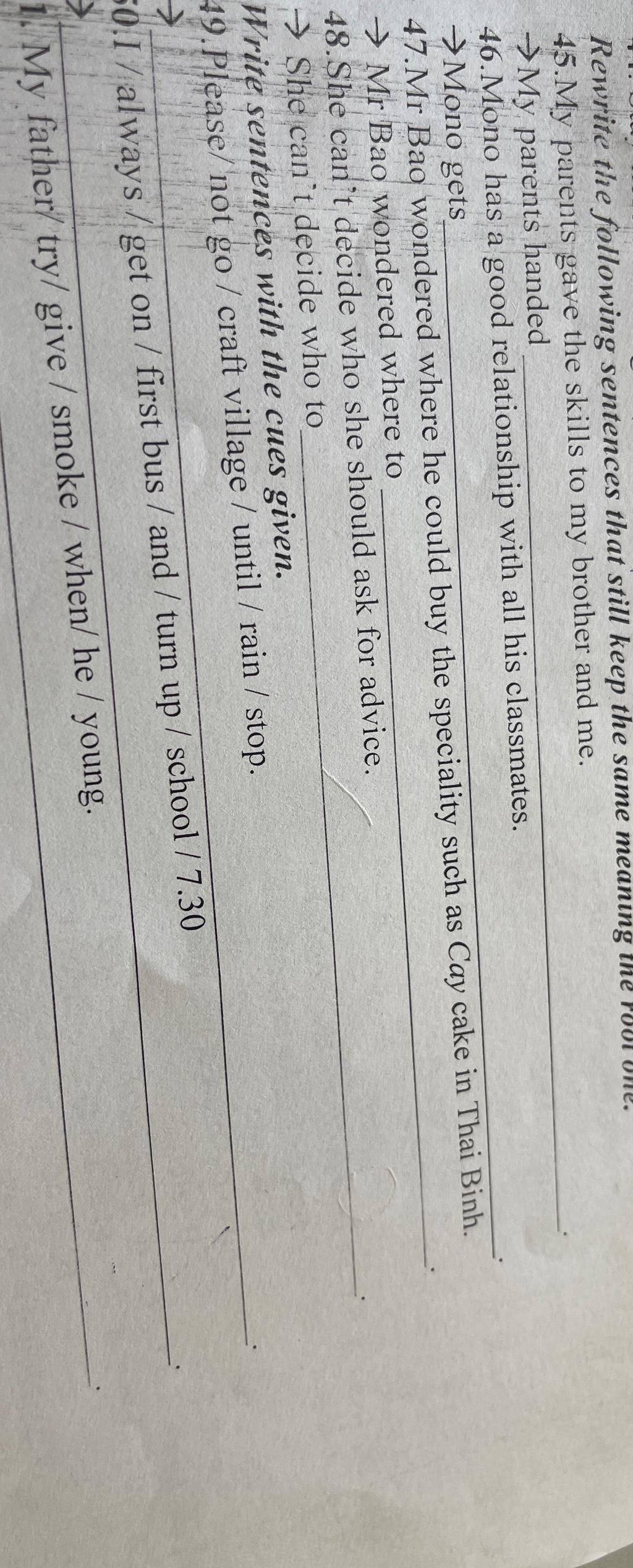 `50)` I always get on the first bus and turn up at school by `7.30`