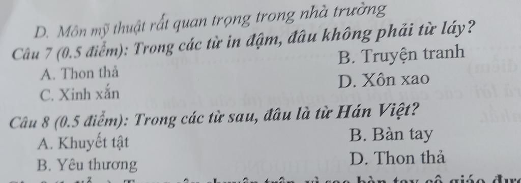 =)) Vì từ " Truyện tranh " tớ ghi rõ là từ ghép nên ... Định nghĩa tớ " ném " vô để bạn tus hiểu được tại sao những đáp án khác là từ láy !!