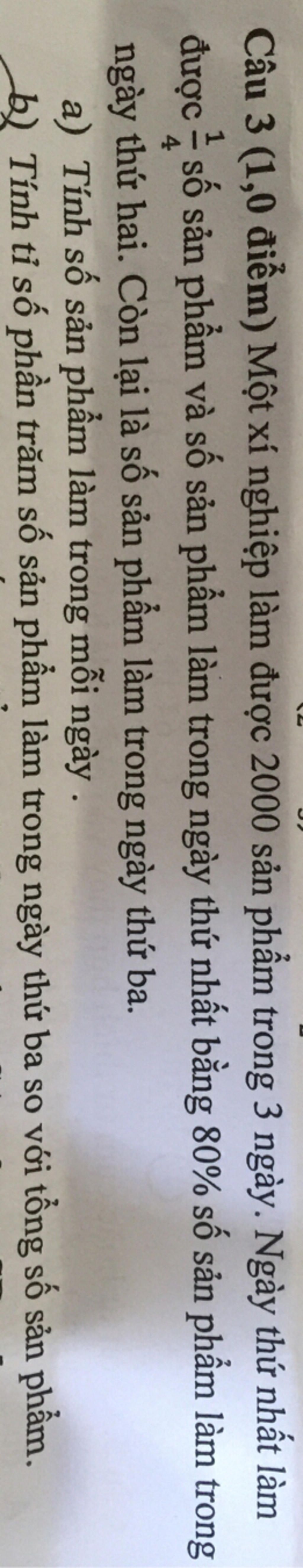 `b )` Tỉ số sản phẩm của ngày thứ ba so vói tổng sản phẩm là :