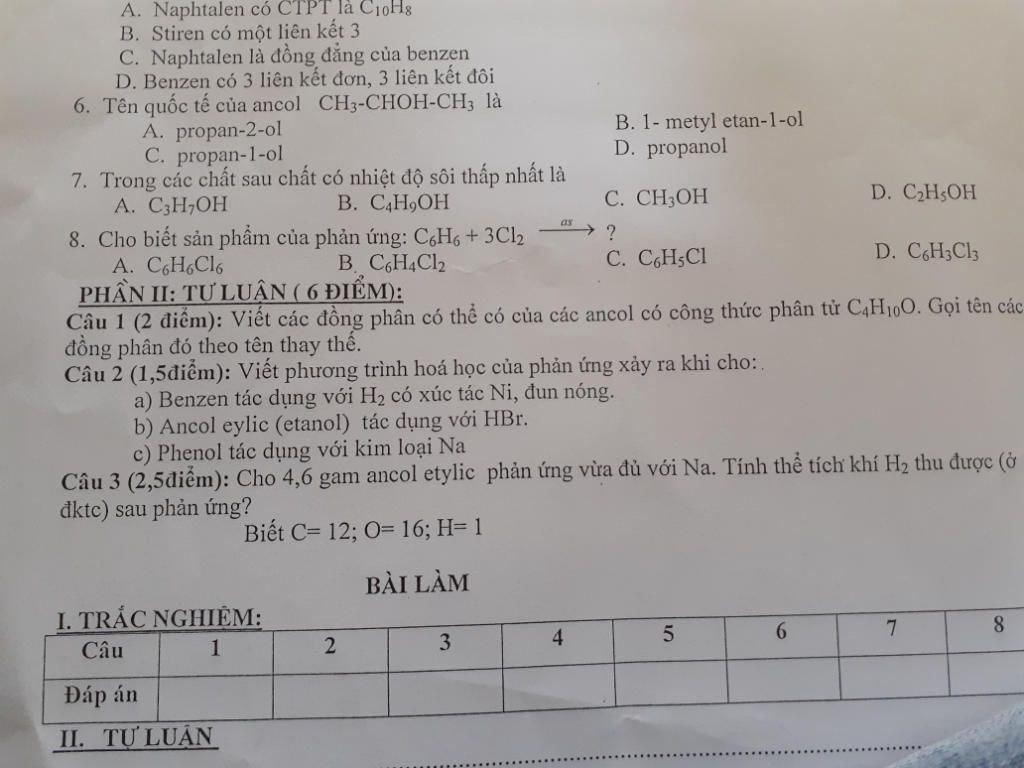 6. Tên quốc tế của ancol CH3-CHOH-CH3 là