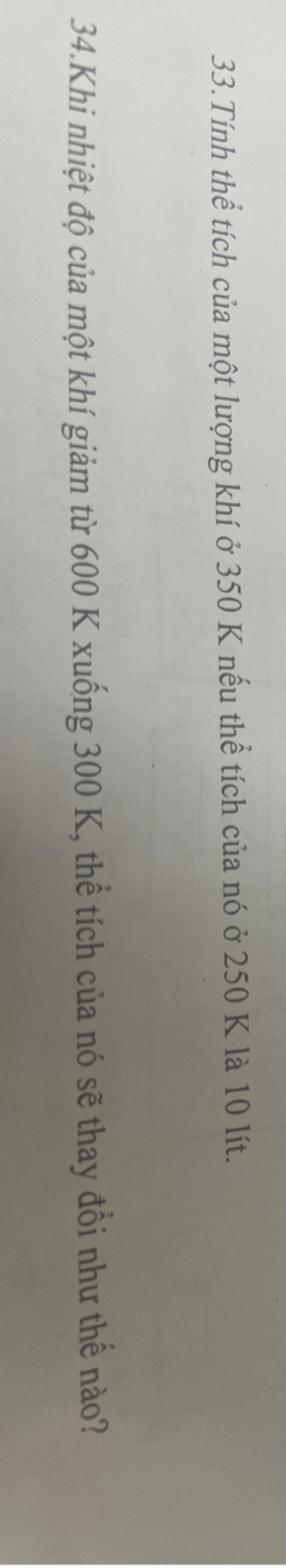 Đề bài: Khi nhiệt độ của một khí giảm từ 600 K xuống 300 K, thể tích của nó sẽ thay đổi như thế nào?
