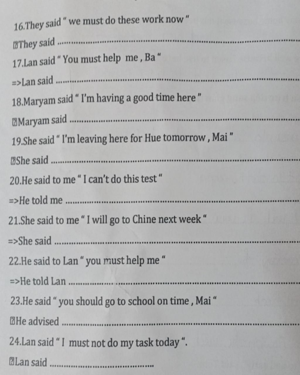 S + said to/ told + O + (that) + S + V (lùi thì)