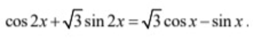 $\cos2x+\sqrt3\sin2x=\sqrt3\cos x-\sin x$