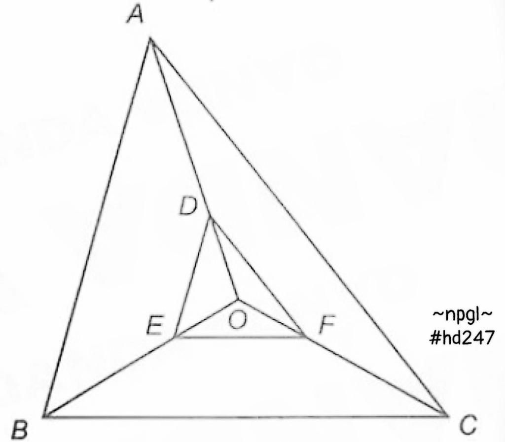 Gọi o là 1 điểm nằm trong tam giác abc .Trên OA lấy D sao cho OD=1/3 OA.Qua D vẽ 1 đường thẳng song song với AB cắt OB tại E . Qua E vẽ 1 đường thẳng song song với BC cắt OC tại F . cmr tam giác DEF đồng dạng với tam giác ABC xác định tỉ số đồng dạng