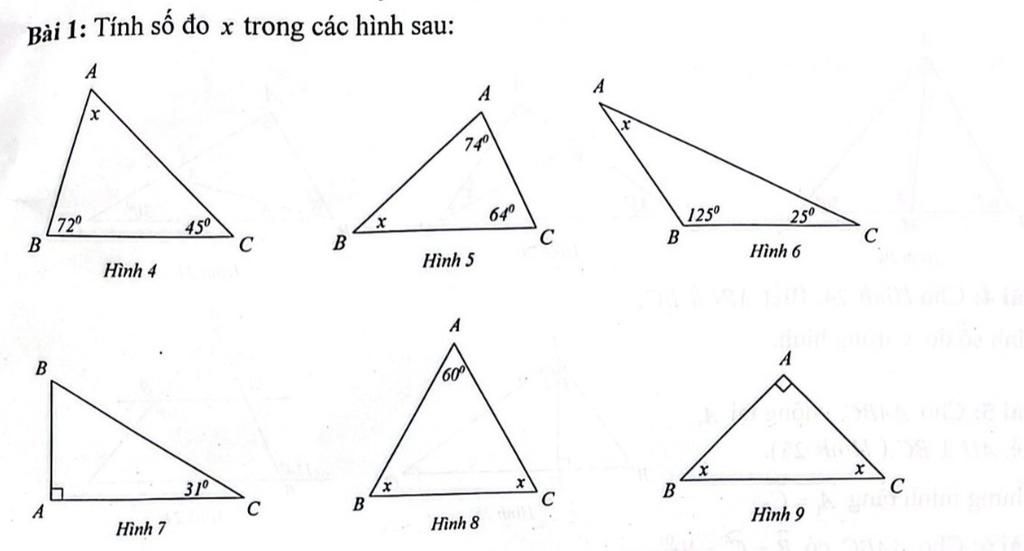 *Hình 8: Ta có: `\hat{ABC}`+`\hat{BAC}`+`\hat{BCA}`=`180^@`( Tổng 3 góc trong tam giác)