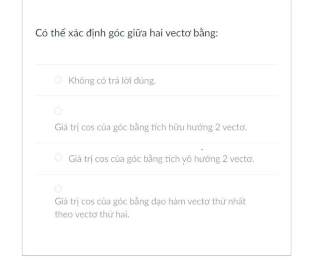Giá trị cos của góc bằng tích hữu hướng 2 vectơ.