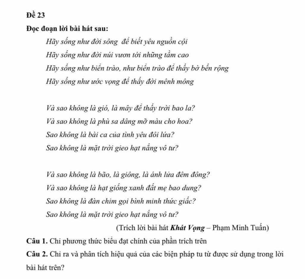 Câu 3: Lời bài hát gọi cho em những suy nghĩ gì về cuộc sống của chính mình