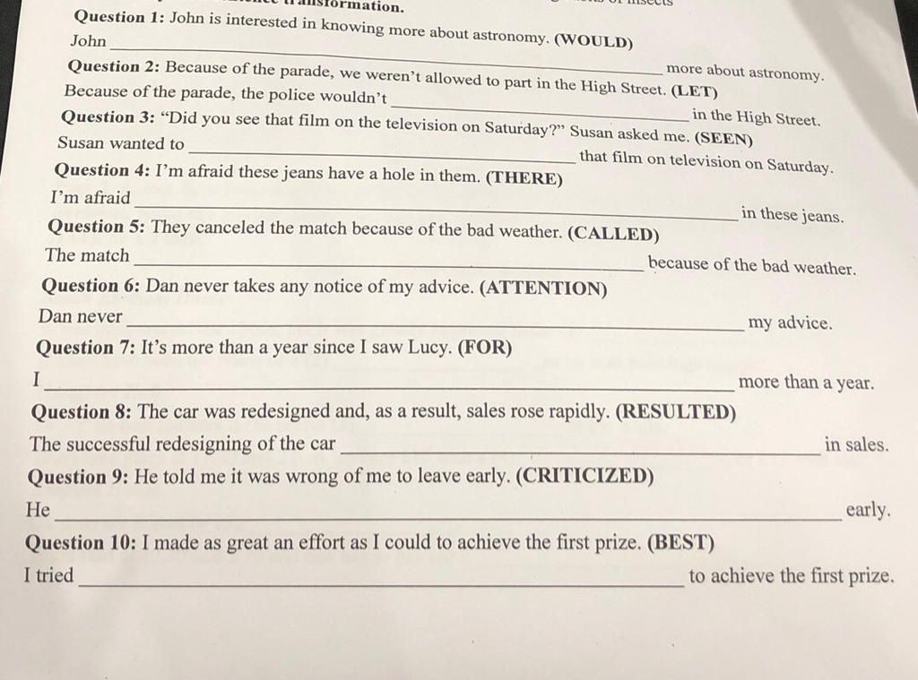 Câu 7: ===> I haven't seen Lucy for more than a year.