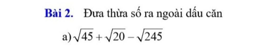 $a) \sqrt{45}+\sqrt{20}-\sqrt{245}$