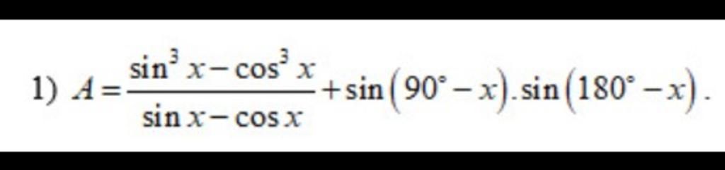 `A=(sin^3x-cos^3x)/(sinx-cosx)+sin(90^o -x).sin(180^o -x)`