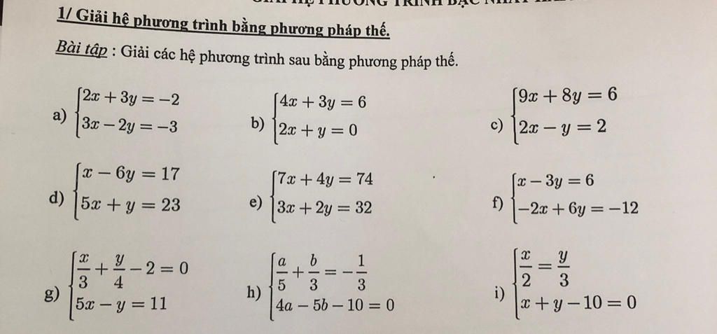 Bài tập : Giải các hệ phương trình sau bằng phương pháp thế.