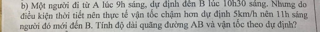 Gọi vận tốc theo dự định của người đó là: x (km/h) (x > 5)