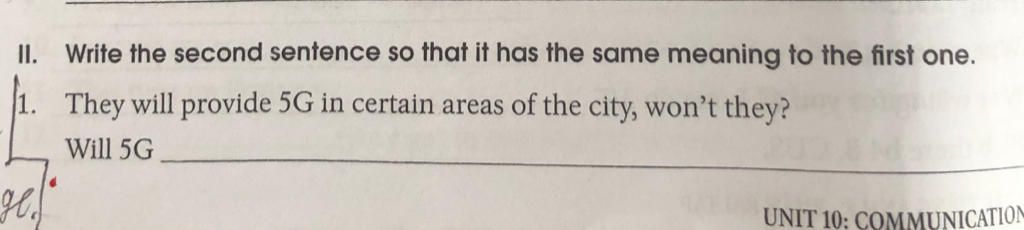 1. Will 5G provided in certain areas of the city? 2. Beck found it difficult to understand her daughter's last messages 3. Video conferencing technology lets people in remote places hold face-to-face meetings 4. I still remember the first time I created an email account 5. It's impossible to make a video call without network 6. Texting isn't as good as face-to-face communications 7. Would you mind confirming the date and the time of meeting? 8. l was made to stay in after school and do extra work 9. Allen suggested giving Jean a video call 10. This time next week my mother will be going to do her shopping Rút gọn1. Will 5G provided in certain areas of the city? 2. Beck found it difficult to understand her daughter's last messages 3. Video conferencing technology lets people in remote places hold face-to-face meetings 4. I still remember the first time I cr... xem thêm