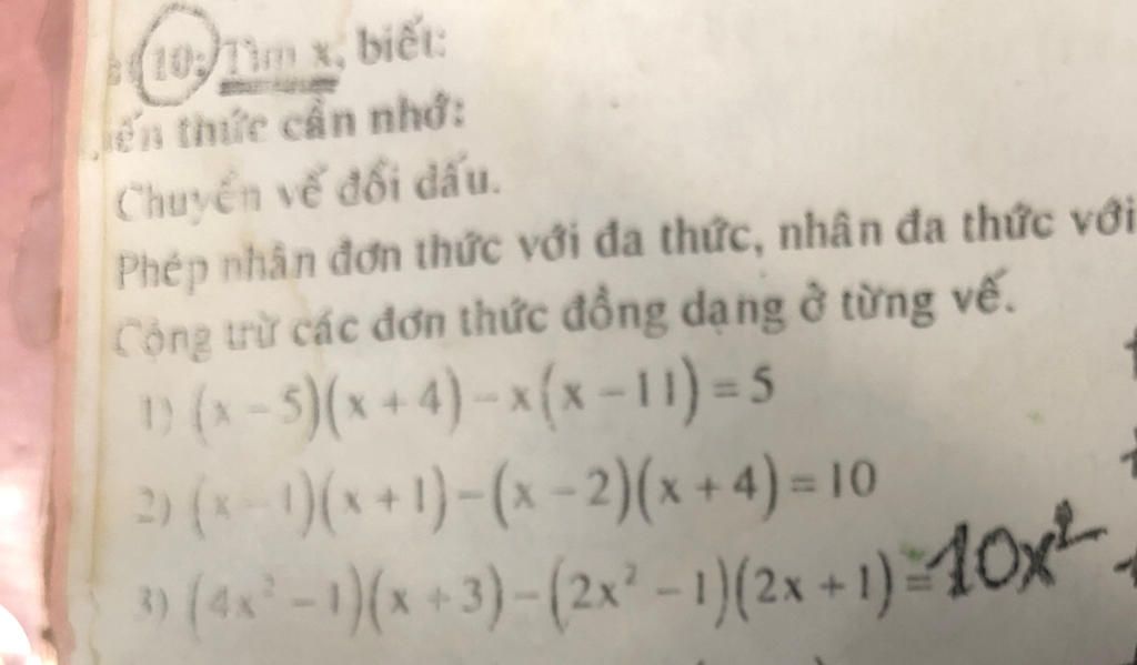 `=> x^2 + x - x - 1 - x^2 - 4x + 2x + 8 - 10 = 0`