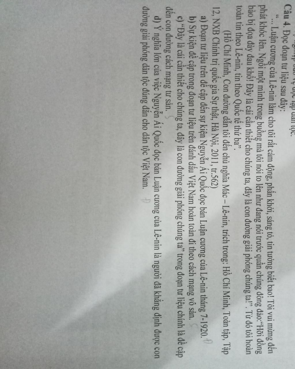 `c,` Sai `-` Trong tư liệu, không có nói về con đường cách mạng tư sản mà là con đường cách mạng vô sản.