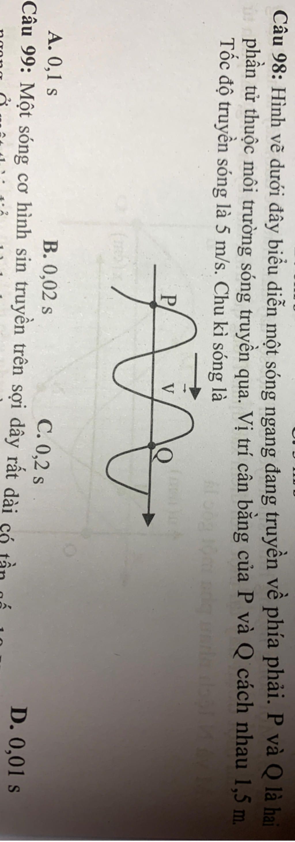 Câu 98: Hình vẽ dưới đây biểu diễn một sóng ngang đang truyền về phía phải. P và Q là hai