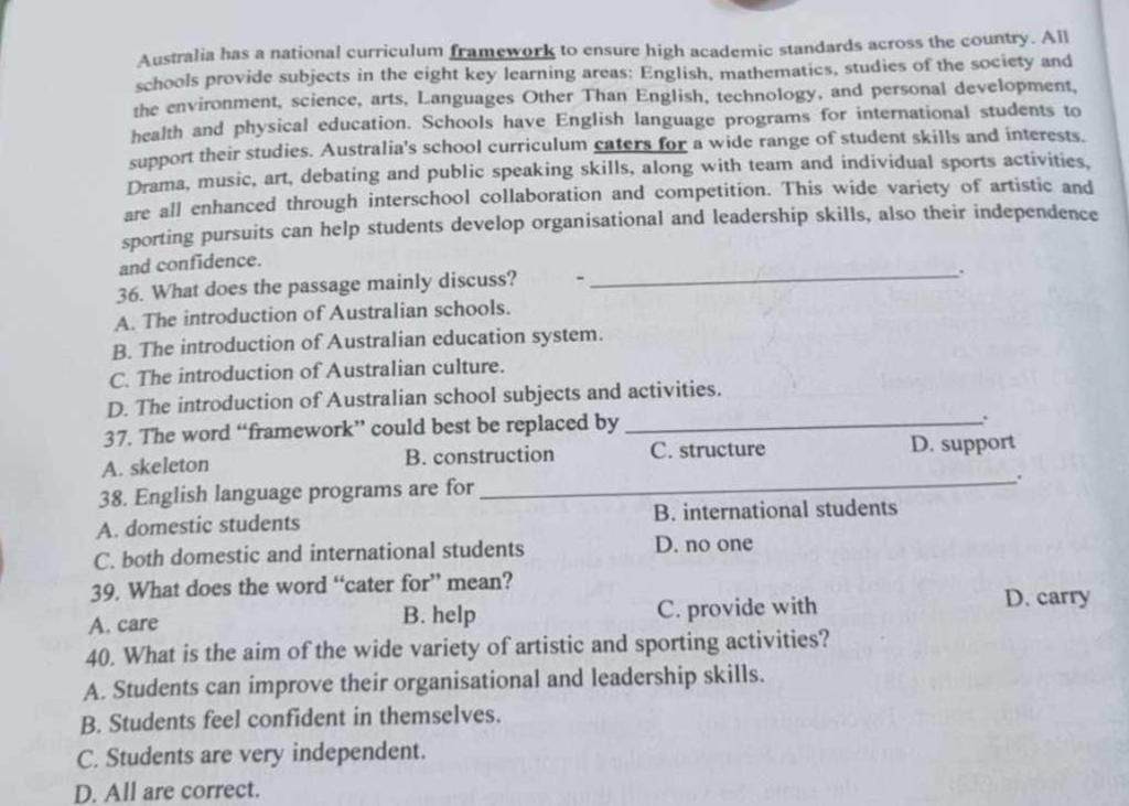 `->` Dẫn chứng: This wide variety of artisic and sporting pursuits can help students develop organisational and leadership skills, also their independence and confidence
