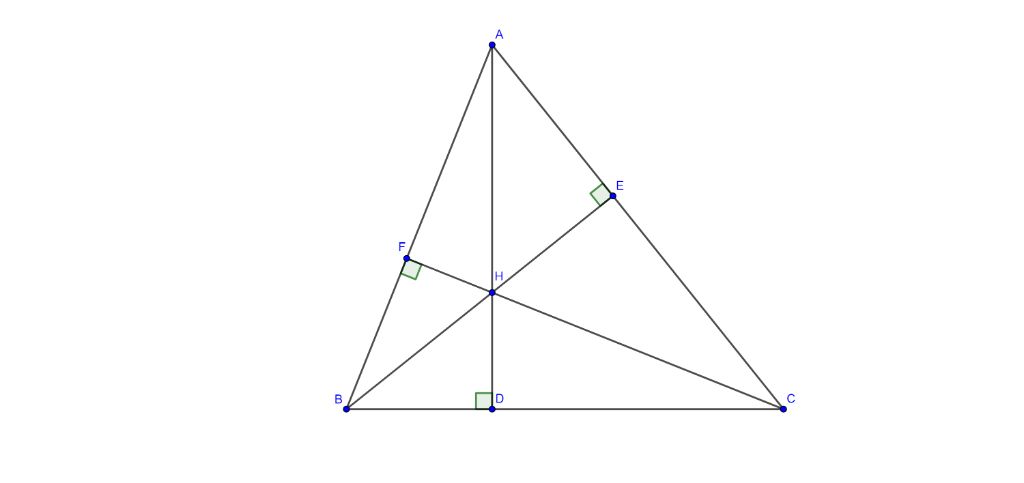 Cho tam giác ABC nhọn, 3 đường cao AD, BE, CF cắt nhau tại H. a) Chứng minh tứ giác AEHF nội tiếp b) Chứng minh tứ giác CDHE nội tiếp c) Chứng minh tứ giác BFHD nội tiếp d) Chứng minh tứ giác BFEC nội tiếp e) Chứng minh tứ giác ABDE nội tiếp f) Chứng minh tứ giác CDFA nội tiếp