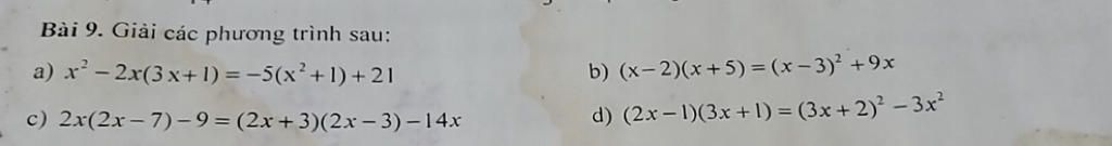 `(x-2)(x+5)=(x-3)^2 +9x`