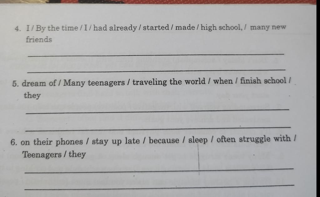 `5.` Many teenagers dream of traveling the world when they finish school.