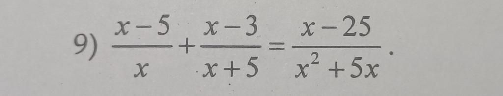 `(x-5)/x + (x-3)/(x+5) = (x - 25)/(x^2 + 5x) (x ne 0; x ne -5)`