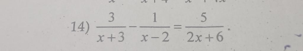 `3/(x+3) - 1/(x-2) = 5/(2x + 6) (x ne -3; x ne 2)`