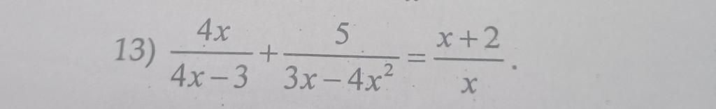 `(4x)/(4x-3)+5/(3x-4x^2)=(x+2)/x` `(đk : x \ne 3/4 ; x\ne 0)`