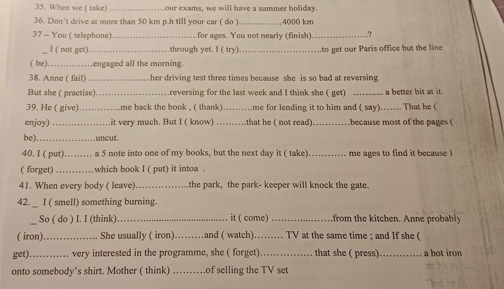 36. Don't drive at more than 50 km p.h till your car (do)...............4000 km