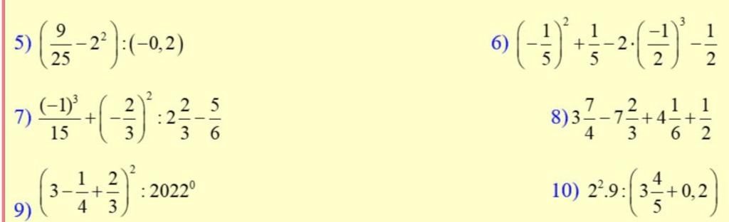 `6)((-1)/5)^2 + 1/5 - 2 . ((-1)/2)^3 - 1/2`