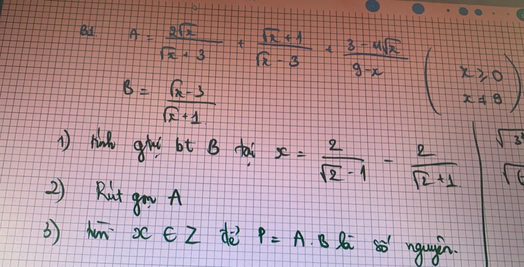 `A=(2x-6sqrtx + x + 4sqrtx +3 - 3 + 11sqrtx)/((sqrtx-3)(sqrtx+3))`
