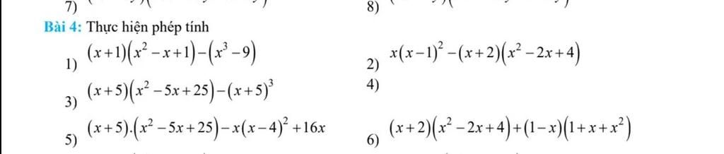 `6) (x + 2)(x^2 - 2x + 4) + (1 - x)(1 + x + x^2)`