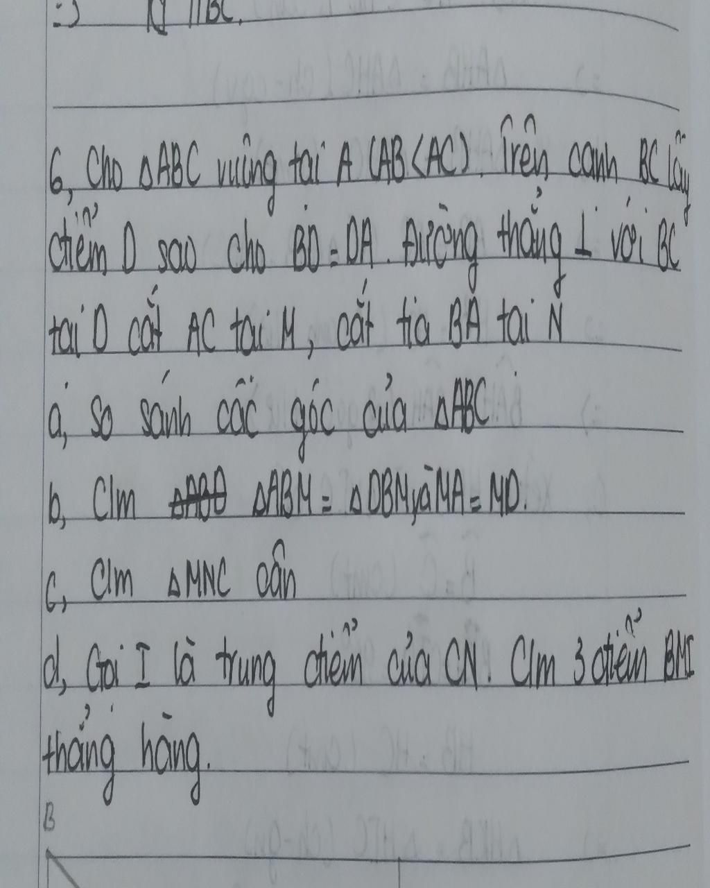6, Cho D ABC vuring tai A (AB (AC). Tren cow BC is