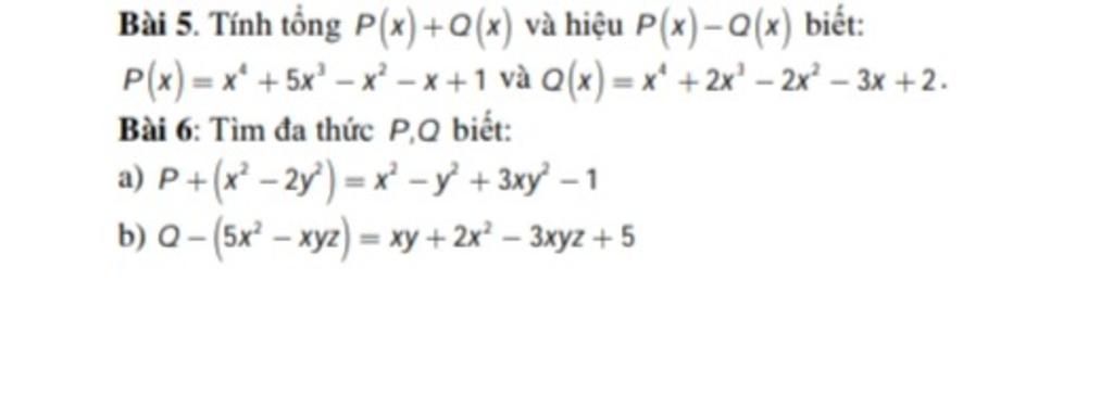 `b)` `Q-(5x^2-xyz)=xy+2x^2-3xyz+5`