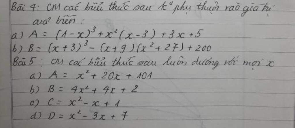 Vậy giá trị biểu thức `A` không phụ thuộc vào giá trị của biến (biến `x`).
