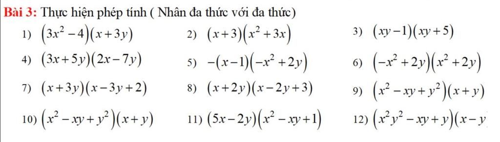 | Bài 3: Thực hiện phép tính ( Nhân đa thức với đa thức)